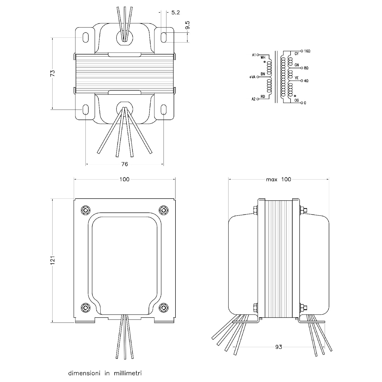 Trasformatore di uscita Push Pull Marshall 100W 1800Ohm/4-8-16 Ohm
