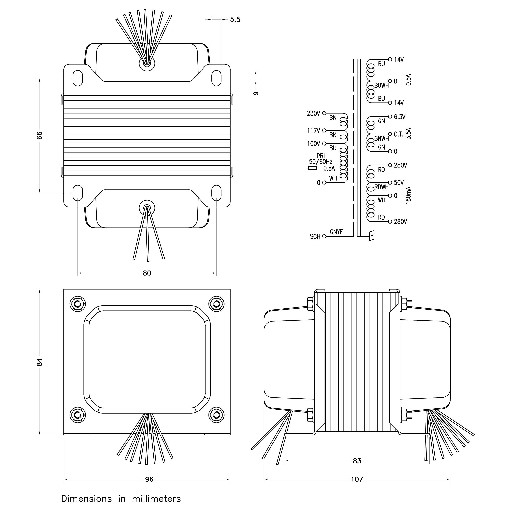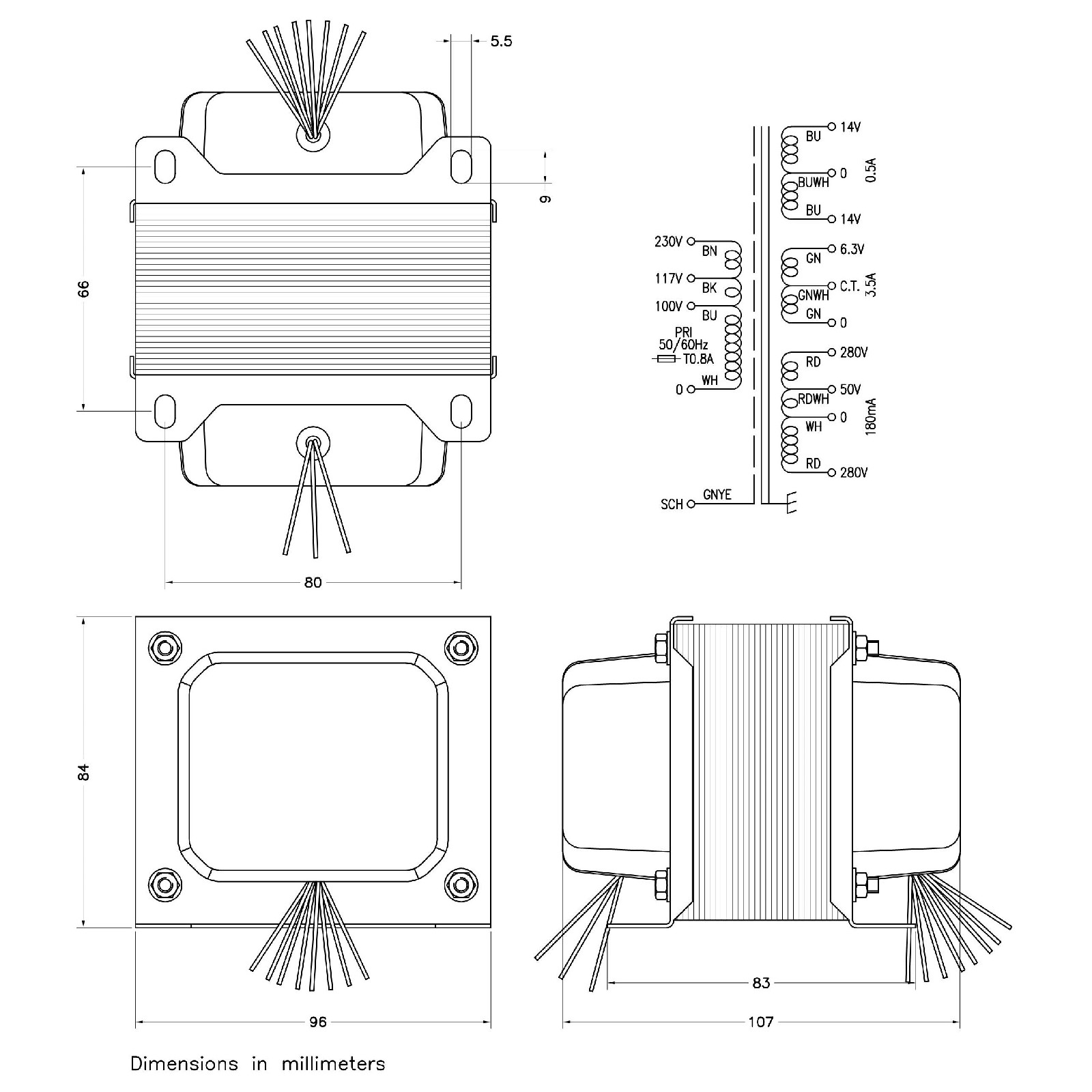 150VA 0-100-117-230/280-0-50-280V 0.2A