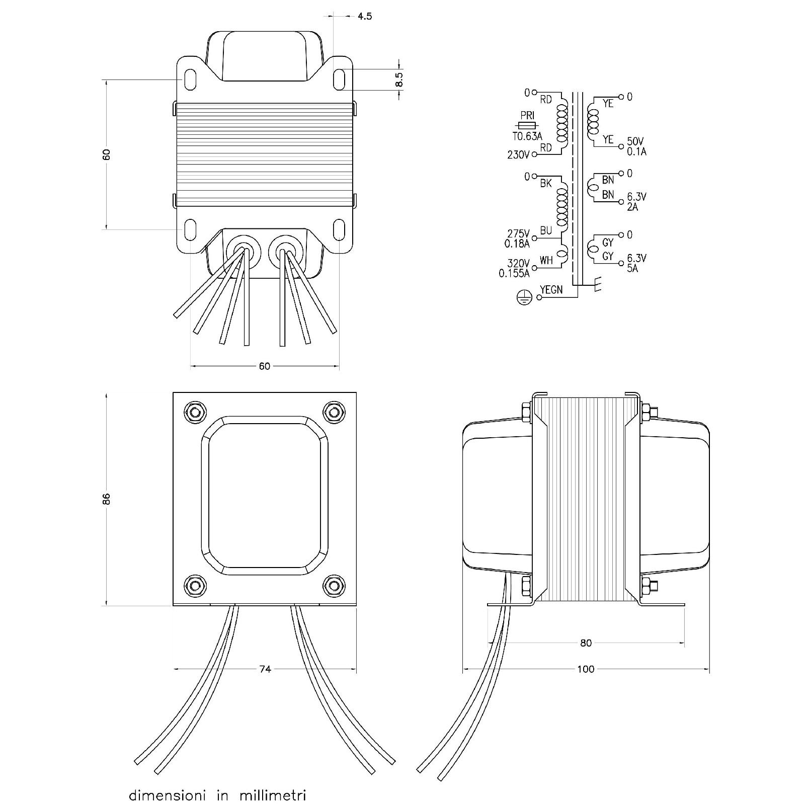Dimensions and schematic: see drawing