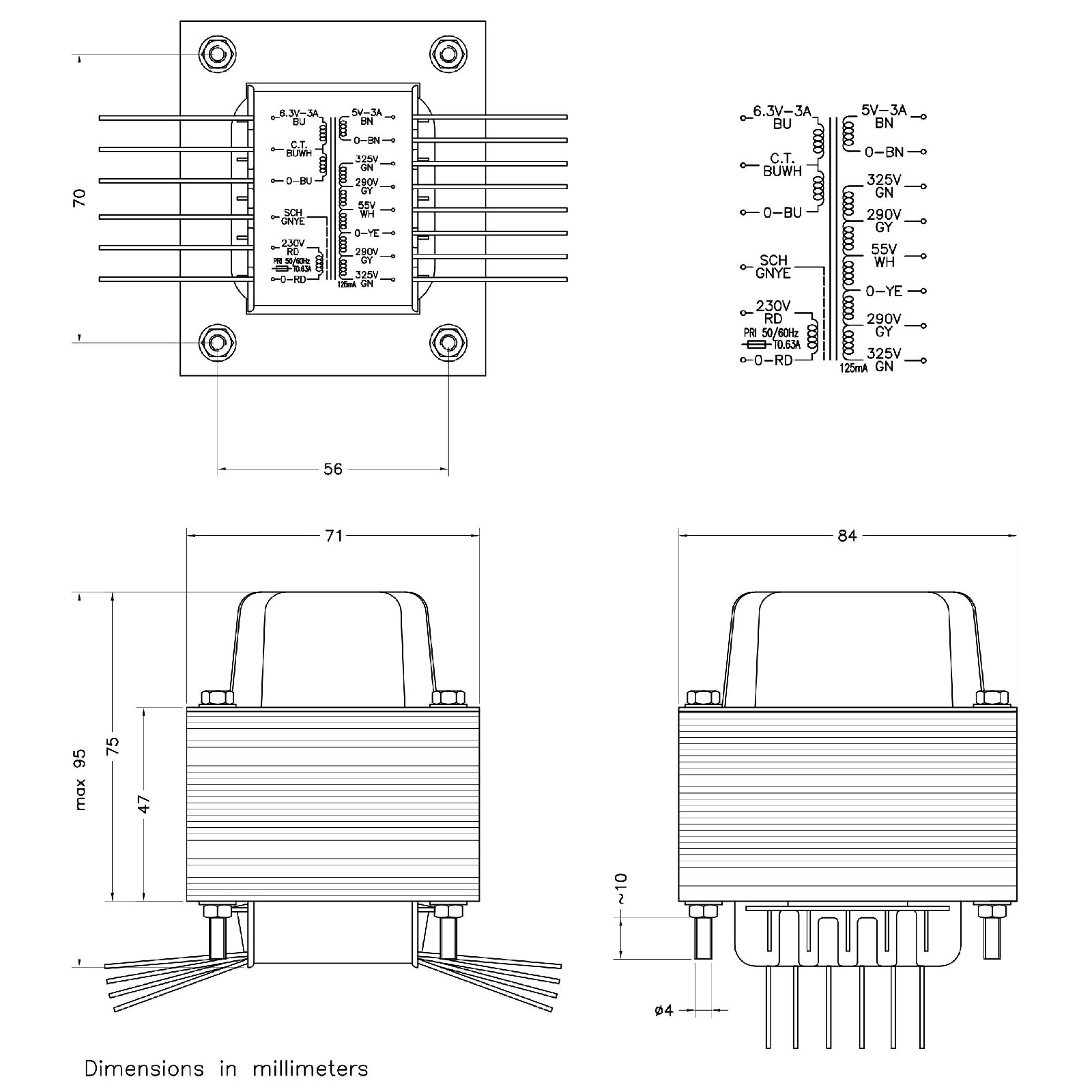 115VA 230/sch/325-290-0-55-290-325V.125A