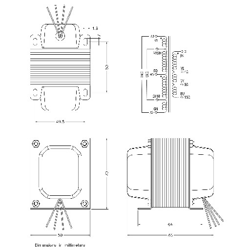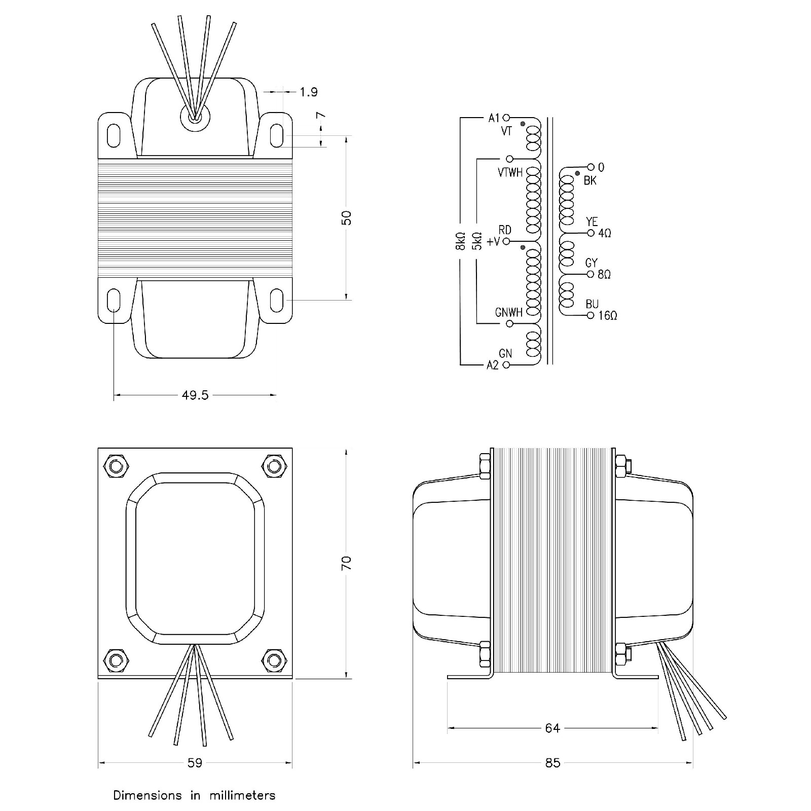 Leakage inductance 4-8-16 Ohm 5k: 18-10-10mH @1kHz 5V series