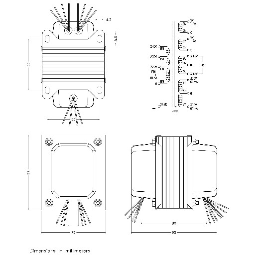 Transformer 88W 230V with shield
