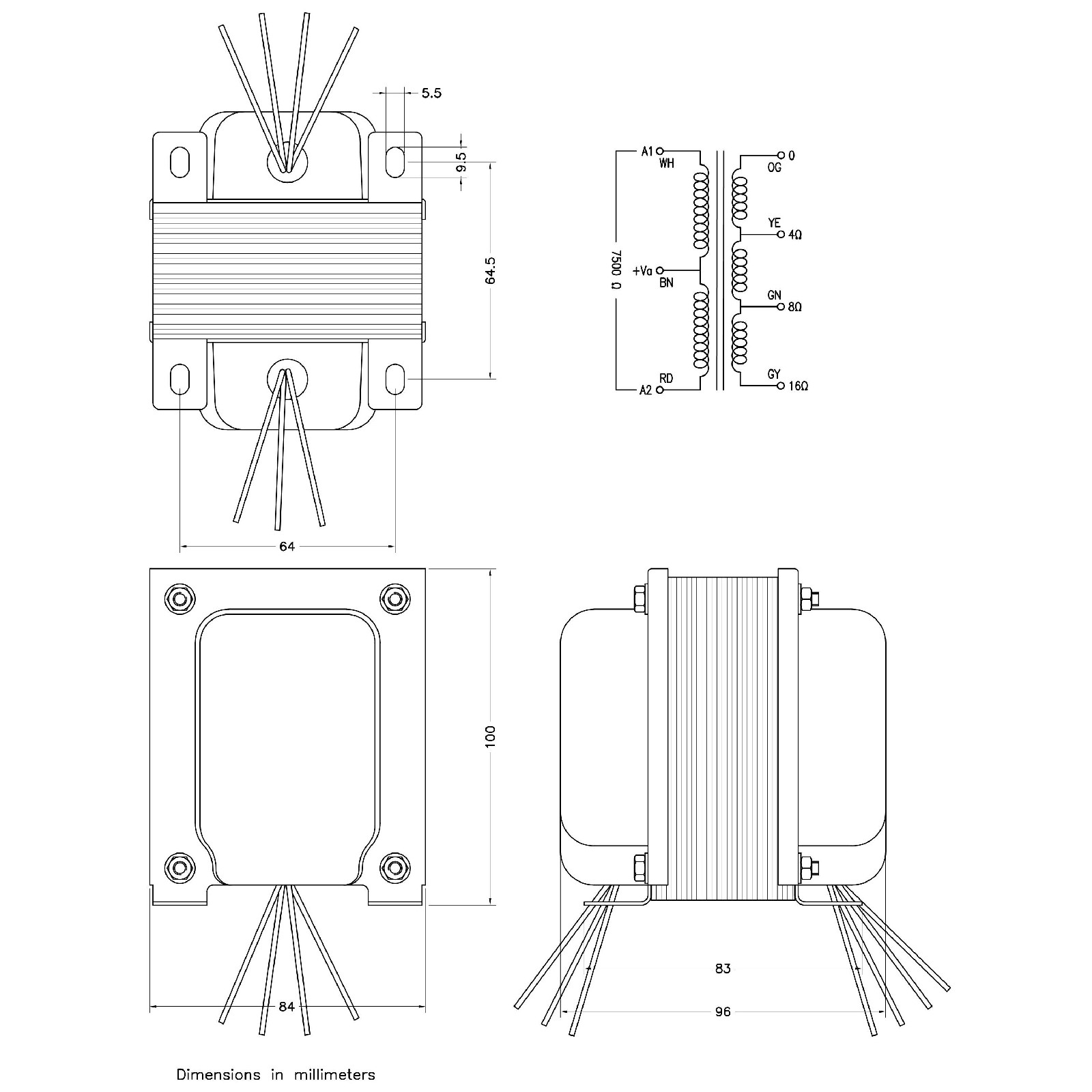 Output Transformer 7500/4-8-16 Ohm 50W